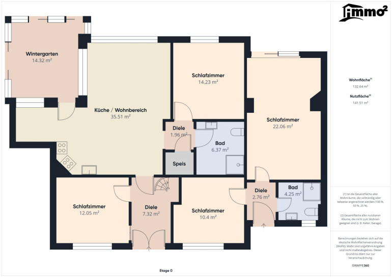 Erdgeschoss: ca. 78,85 m² Wohnfläche (+ ca. 14,32 m² Wintergarten)