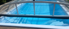 Über das Eingangstor gelangt man in den Garten, in dem der überdachte Pool, die Terrasse und der Hauseingang zu finden sind.