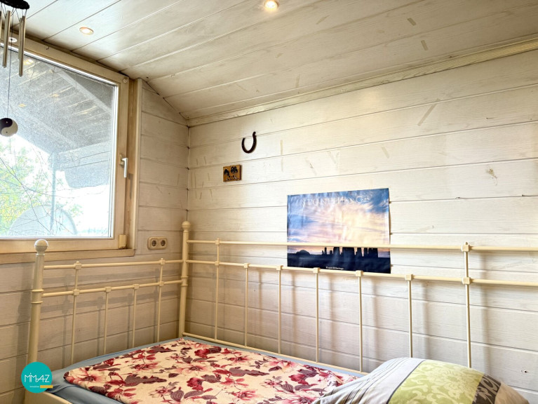 Im Obergeschoss stehen zwei Schlafzimmer zur Verfügung. Zwei weitere Dachräume mit Schrägen bieten zusätzlichen Stauraum oder die Möglichkeit, diese zu kreativen Zwecken auszubauen. Eine separate Toilette sorgt auch hier für Komfort.