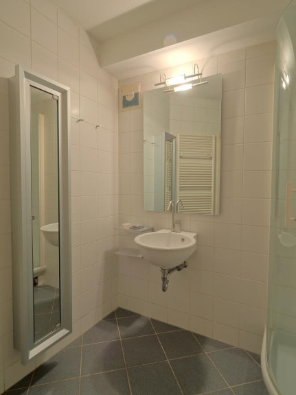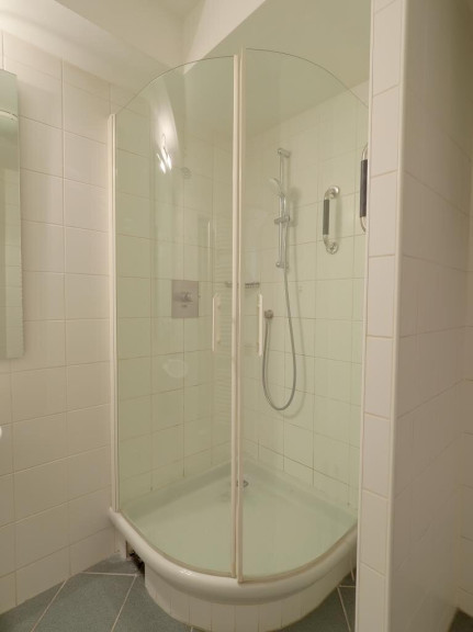 Bad (mit Dusche und Waschmaschinenanschluss) und WC sind getrennt.