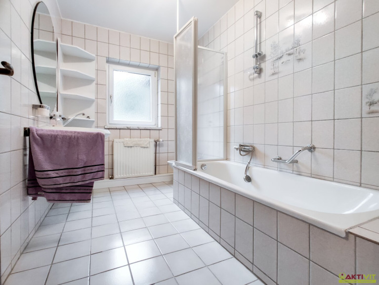 Fliesen, Laminatboden, Zentralheizung, Einbauküche, Bad mit Fenster, Badewanne, Dusche, Kabel/Satelliten-TV, Carport, Garage