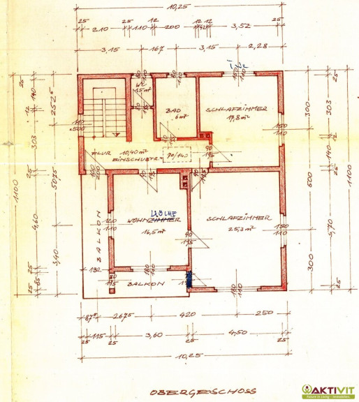 Das Obergeschoss bietet einen identischen Grundriss, jedoch mit einem größeren Balkon von ca. 14 m² und einem Badezimmer mit Dusche.