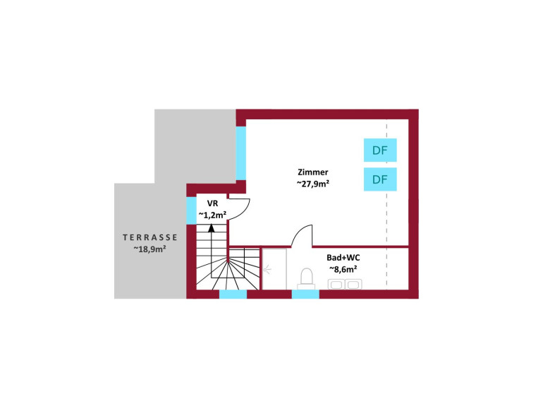 - Zimmer 4 ca. 28 m² mit Terrassenzugang