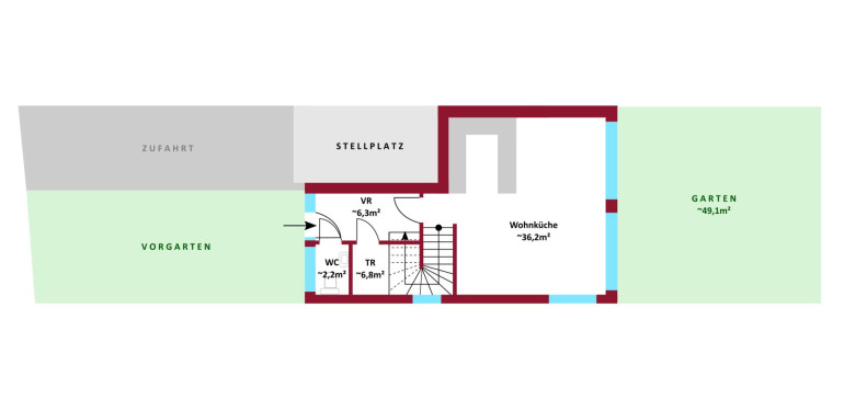 - Großzügiges Wohnküche ca. 36 m² mit Gartenzugang