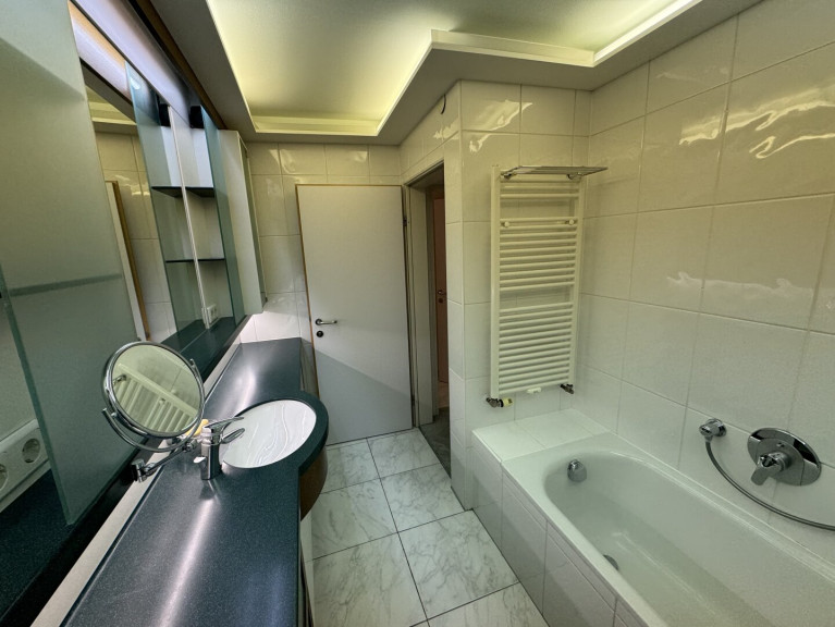 Fliesen, Parkettboden, Zentralheizung, Einbauküche, Badewanne