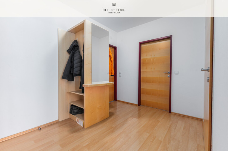 Die Wohnung im 1. Stock überzeugt durch eine durchdachte Raumaufteilung und einen gepflegten Zustand. Die moderne Einbauküche lädt zum Kochen ein, während der helle Wohnbereich mit Parkettboden eine angenehme Atmosphäre schafft.