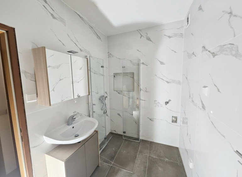 Fliesen, Laminatboden, Fußbodenheizung, Wohnküche / offene Küche, Dusche, Parkplatz