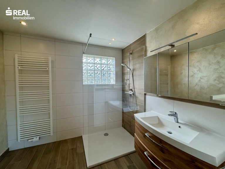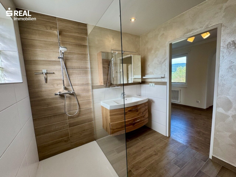 - Badezimmer mit begehbarer barrierefreier Dusche
