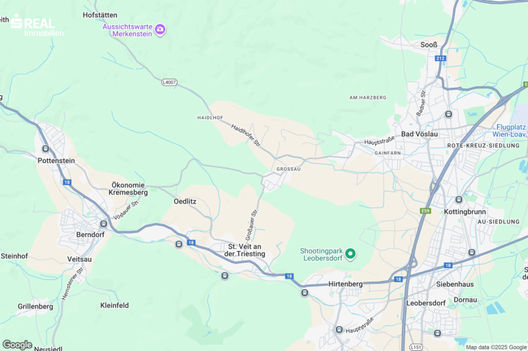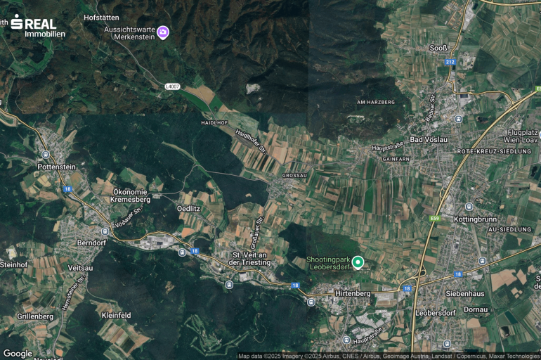 Die Autobahn-Anschluss A2 sowie Bahnhof Bad Vöslau in 5 km / 8 min. Entfernung. Ein Kindergarten ist zirka 110 Meter zu Fuß entfernt.