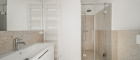 - Badezimmer mit WC, Dusche, Waschbecken und Handtuchheizkörper