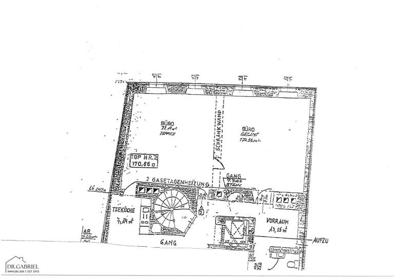 Parkett, Gas, Etagenheizung, Personenaufzug, Teeküche