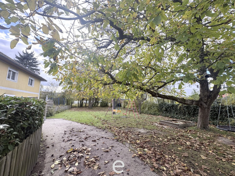 Der Innenhof ist schön gestaltet, bietet Sitzmöglichkeiten und ausreichend Platz zum Verweilen – ein Ort, an dem man gerne ein paar ruhige Momente im Freien genießt. Der angrenzende Spiel- und Grünbereich sorgt für eine angenehme, ländliche Atmosphäre und vermittelt das Gefühl von Wohnen im Grünen, ohne auf die Vorteile einer guten Infrastruktur verzichten zu müssen.