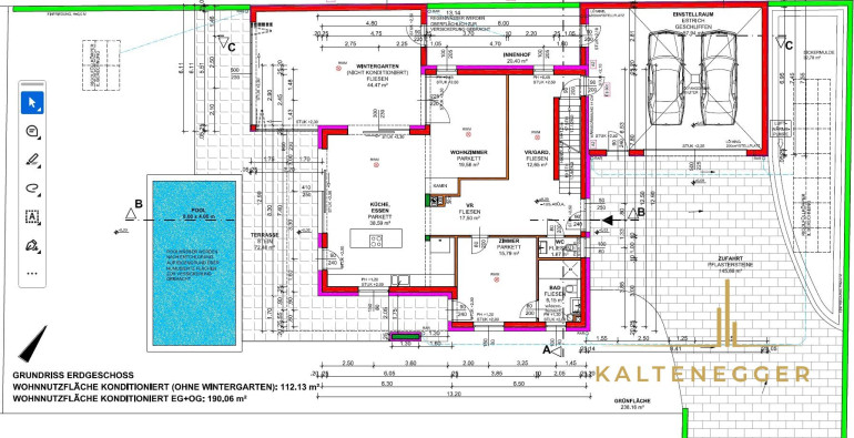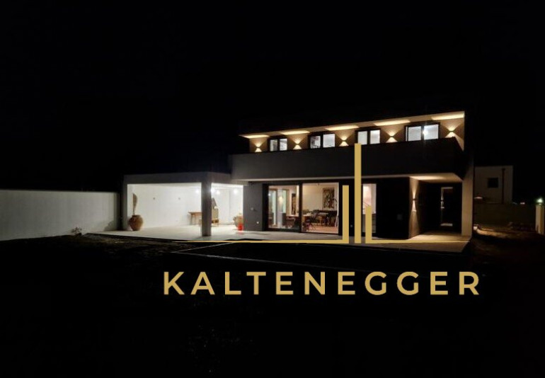 Zusätzlich zu der etwa 190m² Wohnfläche stehen rund 120 m² Kellernutzfläche, ein ca. 45 m² großer Wintergarten sowie eine ca. 60 m² große Garage zur Verfügung. Die Architektur ist modern, funktional und auf großzügiges Wohnen ausgerichtet.
