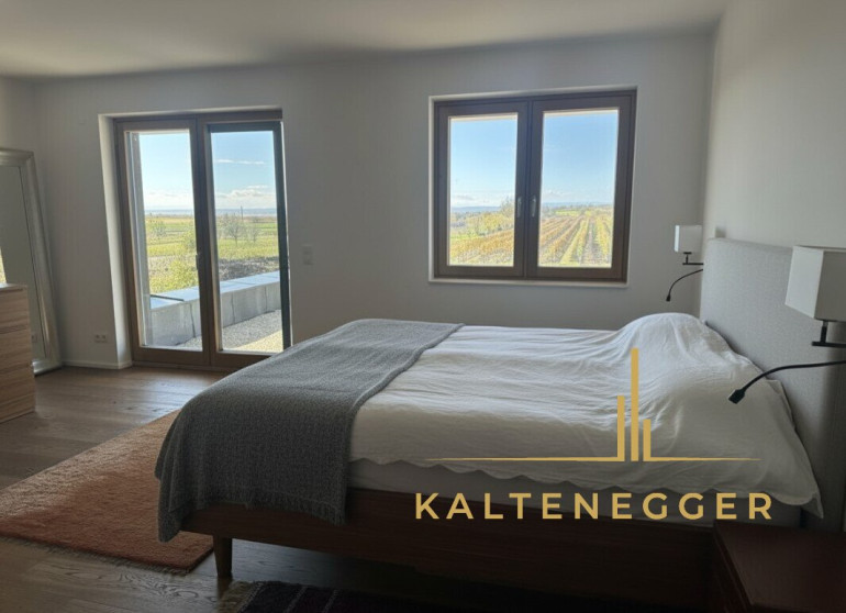 Der Blick in die umliegenden Weingärten ist ein realer Mehrwert und kein Marketingversprechen. Die hochwertige Einrichtung ist um 60.000.-- ebenfalls zu erwerben.
