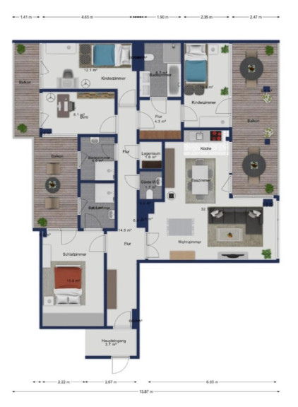 Die großzügig geschnittene Wohnfläche bietet Raum für anspruchsvolle Lebenskonzepte: