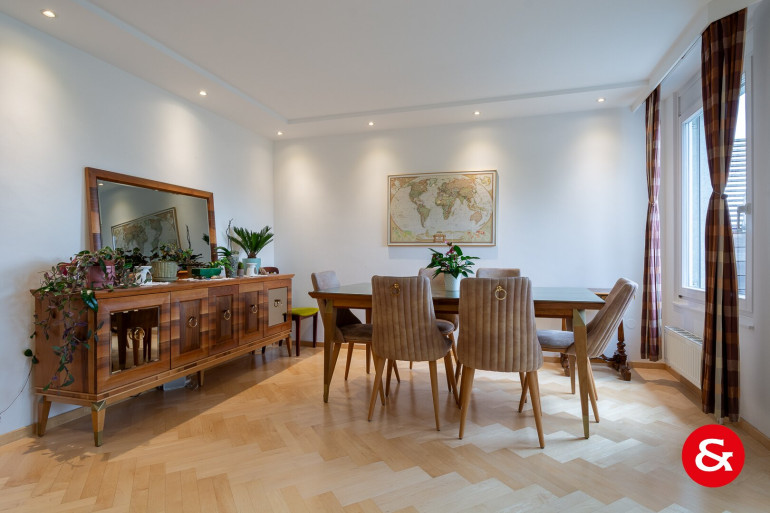 This impressive apartment on the top floor of a newly renovated building offers a generous 178m² of space, featuring a well-designed layout and six spacious rooms.