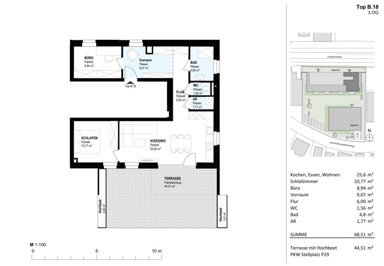 Besonderes Augenmerk wurde auf eine Ausstattung gelegt, die Qualität und Komfort vereint. Elektrischer Sonnenschutz in allen Schlafräumen, edle Materialien und ein zeitloses Design sorgen für ein stilvolles Wohnambiente. Alle Wohnungen verfügen über großzügige Freiflächen wie Balkone, Terrassen oder Eigengärten. Fixpreise und ein hervorragendes Preis-Leistungs-Verhältnis bieten zusätzliche Planungssicherheit. Auch für die Gewerbeeinheiten stehen Kundenparkplätze direkt vor Ort zur Verfügung.