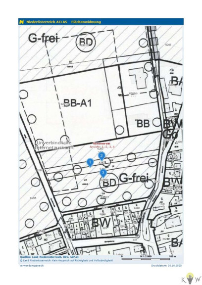 Das Grundstück ist derzeit als Grünland gewidmet und befindet sich in unmittelbarer Nähe eines bestehenden Bauland-Betriebsgebiets und eines Bauland-Wohngebietes. Nur ein weiteres Grundstück trennt die Fläche vom gewidmeten Bauland – eine Lage, die langfristig interessantes Entwicklungspotenzial bietet.