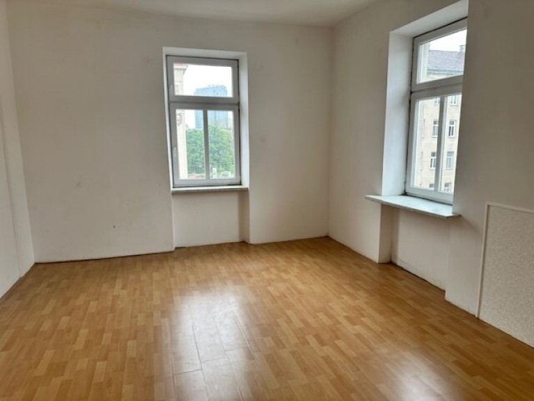 Ein Highlight dieser Wohnung ist südseitige Ausrichtung auf die Alpengasse, nur ein Fenster schaut direkt auf die Favoritenstraße. Im Zuge der Komplettsanierung müsste man ein ädaquates Badezimmer mit moderner Ausstattung installieren.