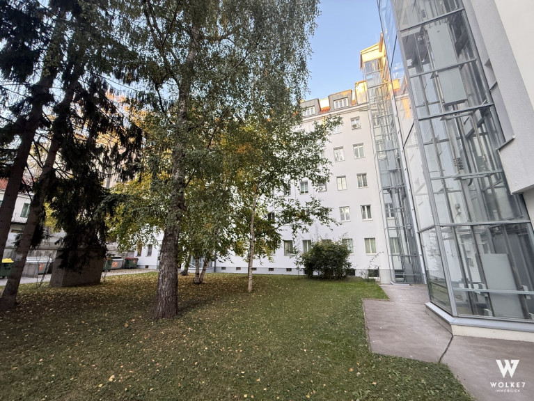 Die Wohnanlage bietet mehrere begrünte Freiflächen zur Erholung sowie Gemeinschaftsräume wie beispielsweise einen Waschraum. Besonders hervorzuheben ist die hervorragende Lage – direkt an einer der beliebtesten Einkaufsstraßen Simmerings. Zudem überzeugt die Wohnung durch einen schönen Ausblick auf die benachbarte Kirche mit ihrem gepflegten Vorplatz, auf dem zur Weihnachtszeit ein stimmungsvoller Adventmarkt stattfindet.
