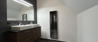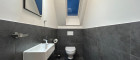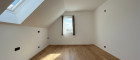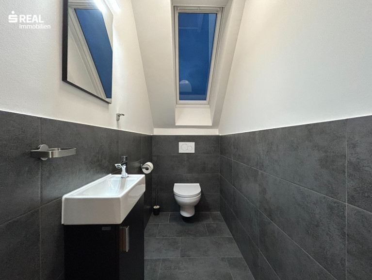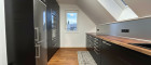 Das Schlafzimmer ist ebenfalls mit einem Dachfenster ausgestattet, das zusätzlichen natürlichen Lichteinfall bietet und für eine angenehme Atmosphäre sorgt. Die Wohnung verfügt über ein separates WC sowie ein großzügiges Badezimmer, beide ebenfalls mit Dachfenstern.