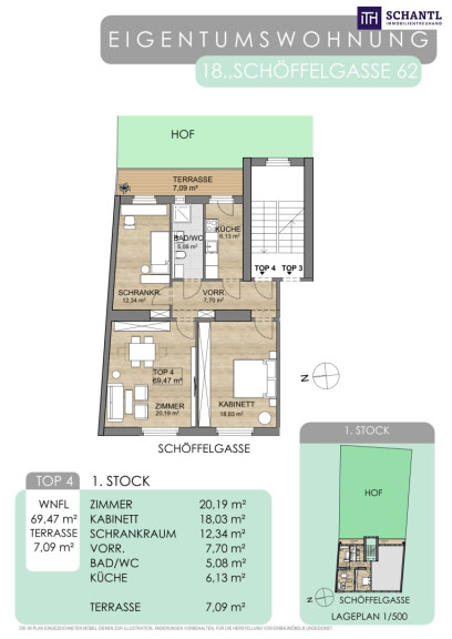 + TOP 4: 1.Stock / Wohnfläche ca. 69,47m² / Terrasse ca. 7,09m² / € 540.000.-