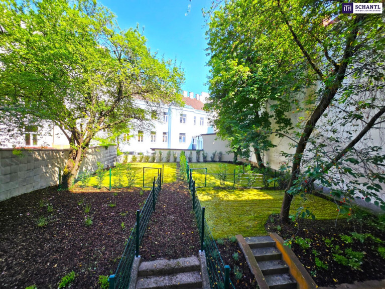 Highlight ist sicherlich der riesige Eigengarten im schönen, grünen Innenhof!