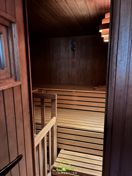 Weiters wurde 1980 ein Einfamilienhaus errichtet. Im Obergeschoß befindet sich die Wohnebene mit knapp 95m² Wohnfläche. Im Erdgeschoß ist außerdem eine Schwimmhalle mit WC-Anlage und Sauna vorhanden.