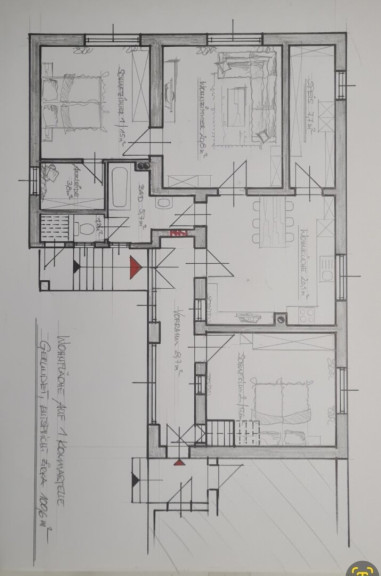 Das Wohnhaus teilt sich in Küche, Vorraum, Wohnzimmer, 2 Zimmer, Bad, WC.