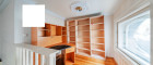 Das Wohnzimmer präsentiert sich mit einem Kaminofen als einladender Mittelpunkt der Wohnung. Eine charmante Empore verleiht dem Raum zusätzlich Charakter und eignet sich hervorragend als Bibliothek, Arbeitsbereich oder Klavierplatz. Angrenzend daran liegt die großzügige Wohnküche, die mit allen notwendigen Geräten ausgestattet ist und viel Platz für gemeinsames Kochen und geselliges Beisammensein bietet.