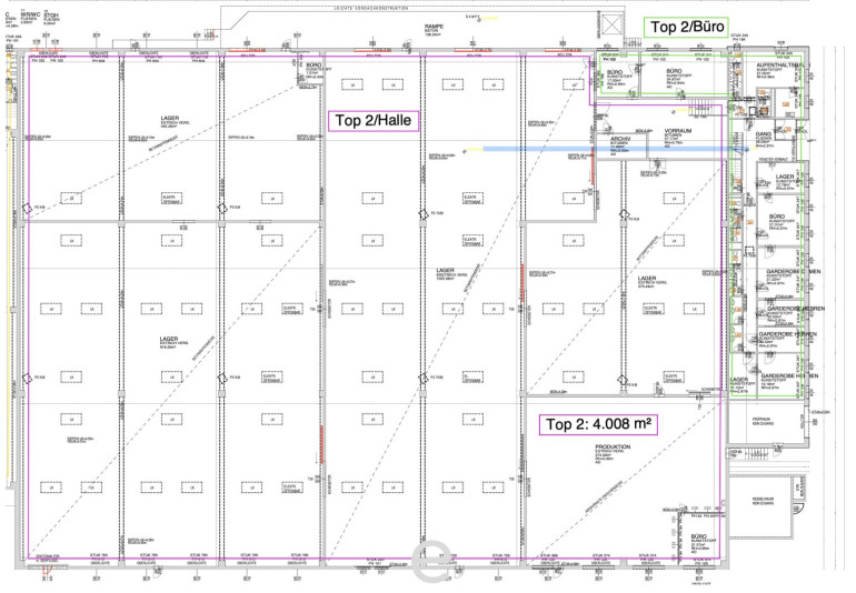 Zur Vermietung stehen rd. 4.008,00 m² Lager sowie rd. 230,00 m² Büro,welche beste Voraussetzungen für eine maßgeschneiderte Lager- sowie Produktionsfläche bieten. Das Büro ist mit einem neuen Vinyl-Boden sowie neuen Küchengeräten ausgestattet. Die Beschickung der Halle erfolgt über ein ebenerdiges Tor sowie über vier fixe LKW-Rampen. Stellplätze können in ausreichender Anzahl am Gelände angemietet werden. Die Halle ist beheizbar und verfügt über eine BUK von 7,95 m. Bei Bedarf können auf dem Gelände noch weitere Büroräumlichkeiten angemietet werden.