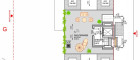 1. Dachgeschoss: Vorraum, Wohnküche mit Zugang zum Balkon (12,88 m²), Garten (44,92 m²), Zimmer, Abstellraum, Bad (Dusche/ WC) und Garage (37,39 m²)