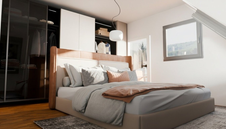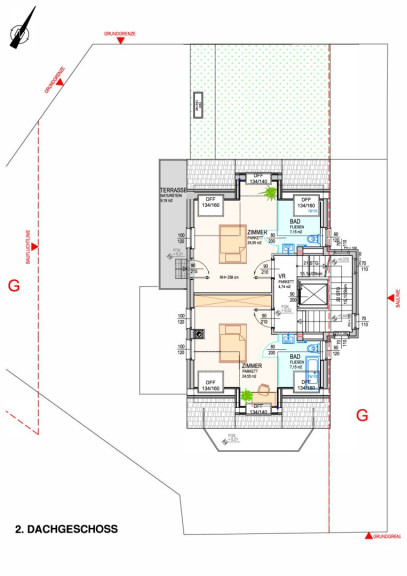2. Dachgeschoss: Schlafzimmer mit en-suite Bad (Dusche/ WC), Terrasse (9,19 m²) und Schlafzimmer mit en-suite Bad (Dusche/ WC)