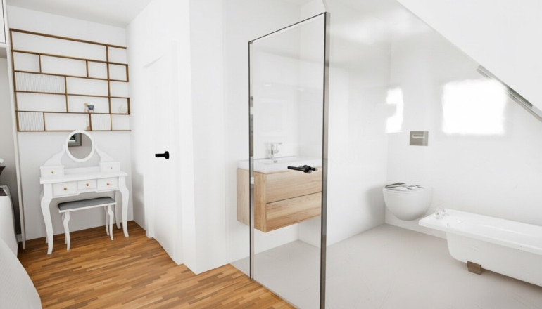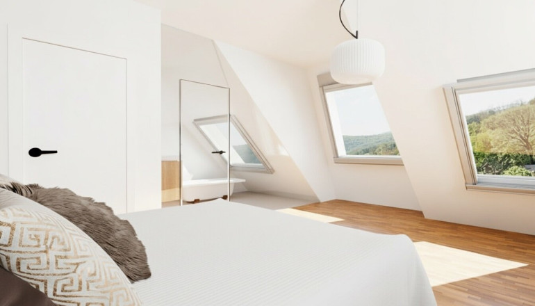 2. Dachgeschoss: Schlafzimmer mit en-suite Bad (Dusche/ WC), Terrasse (9,19 m²) und Schlafzimmer mit en-suite Bad (Dusche/ WC)
