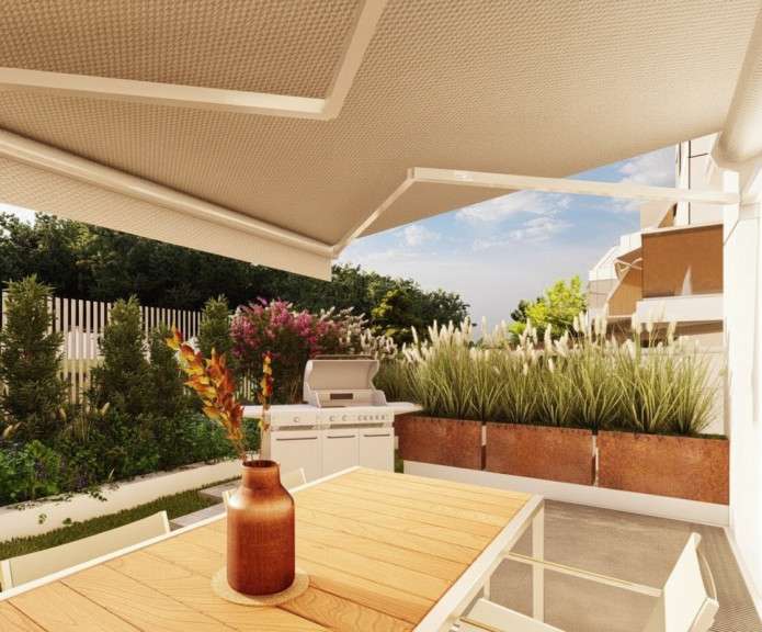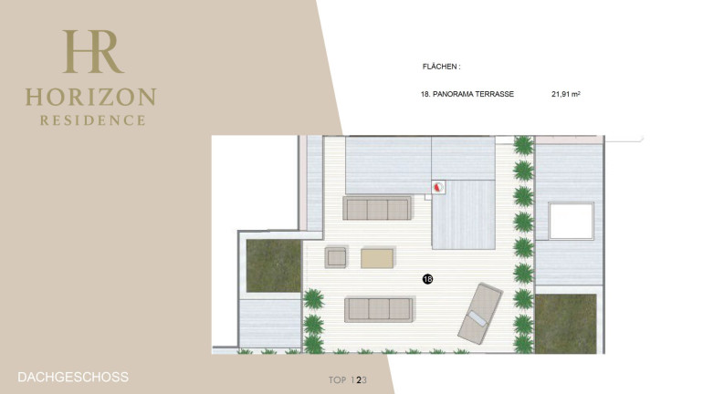 - Dachterrassen mit Vorbereitung für individuelle Kundenwünsche wie Dusche Whirlpool, Outdoor-Küche. Großformatige Feinsteinzeugbeläge für eine pflegeleichte und stilvolle Gestaltung.