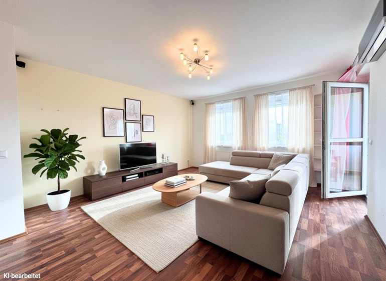 Helle 3-Zimmer-Wohnung im 2. und zugleich letzten Stock einer familienfreundlichen Wohnsiedlung. Zentral begehbar über einen Vorraum mit zwei seitlichen Fluren. Highlight ist das klimatisierte Wohnzimmer mit moderner Küchen-Nische, Essbereich und direktem Zugang zur Loggia. Ein überdachter Stellplatz ist um EUR 10.000 verpflichtend mit zu erwerben, dadurch erhöht sich der Gesamtkaufpreis der Liegenschaft auf EUR 230.000.