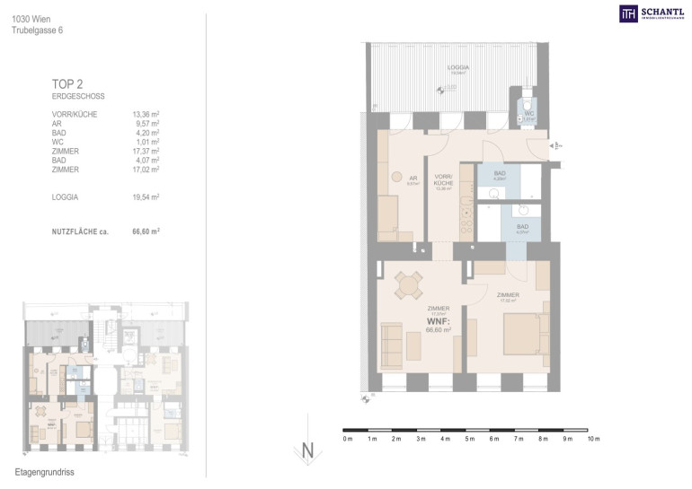 Wohnfläche: ca. 66,60m² + Loggia: ca. 19,54m²