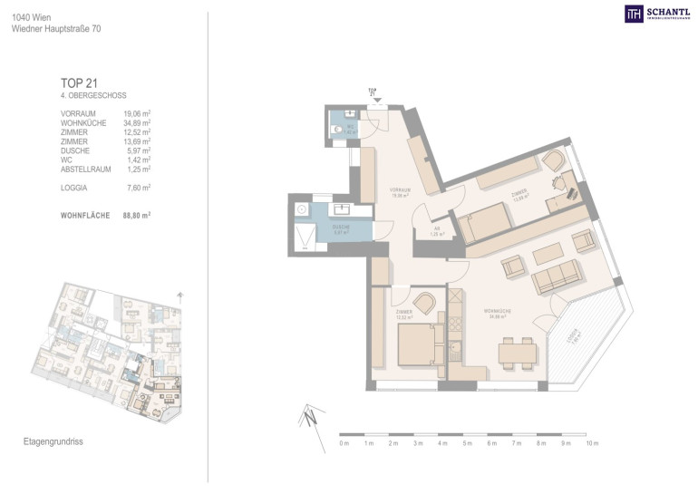 Wohnfläche: ca. 88,80m² + Loggia: ca. 7,60m² + Kellerabteil