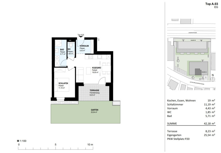 Besonderes Augenmerk wurde auf eine Ausstattung gelegt, die Qualität und Komfort vereint. Elektrischer Sonnenschutz in allen Schlafräumen, edle Materialien und ein zeitloses Design sorgen für ein stilvolles Wohnambiente. Alle Wohnungen verfügen über großzügige Freiflächen wie Balkone, Terrassen oder Eigengärten. Fixpreise und ein hervorragendes Preis-Leistungs-Verhältnis bieten zusätzliche Planungssicherheit. Auch für die Gewerbeeinheiten stehen Kundenparkplätze direkt vor Ort zur Verfügung.