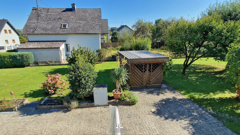Handwerker kommen im Hobbyraum neben der Garage auf ihre Kosten und Gartengeräte und weitere Utensilien verstaut man im Geräteschuppen. Platz für Trampolin, Hochbeet, Spielflächen etc. ist ausreichend vorhanden.