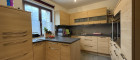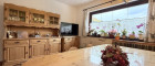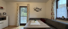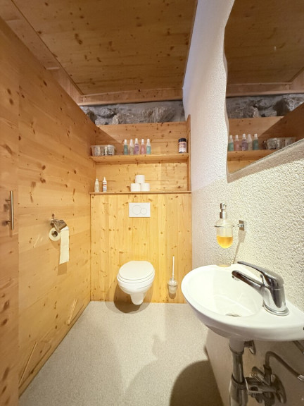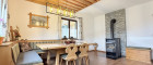 Eine einladende Küche, eine gemütliche Bauernstube mit einem Kaminofen, das Esszimmer mit Zugang zur uneinsehbaren Terrasse, zwei weitere Zimmer, ein Badezimmer mit Badewanne und Dusche und Fenster, ein WC und ein Vorraum.