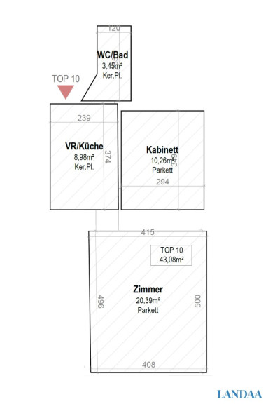 2 Zimmer auf ca. 43,08 m² + Balkon ca. 6 m²
