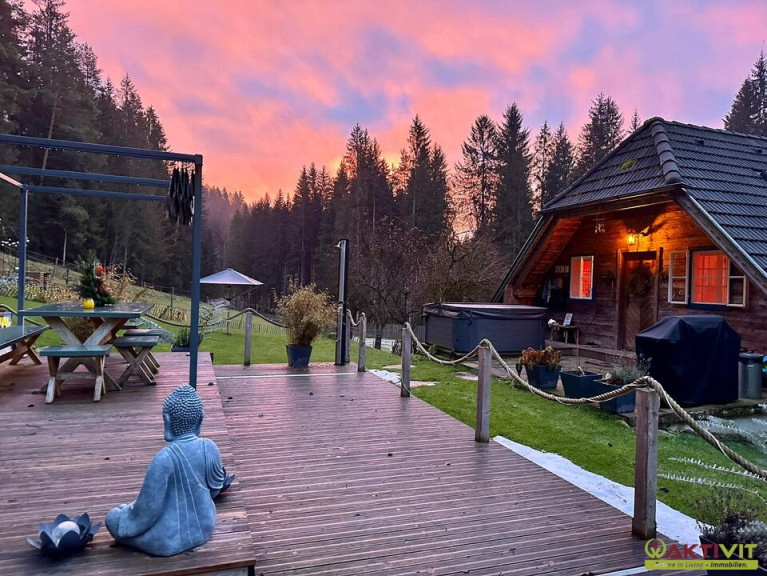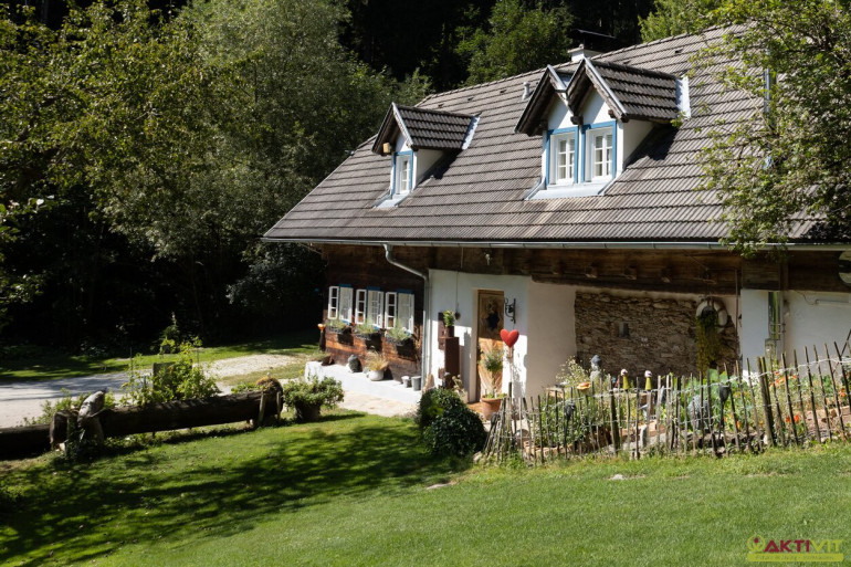 - Grundstücksfläche ca. 16.000 m² mit Wildbach, Hochbeeten und Obstbäumen