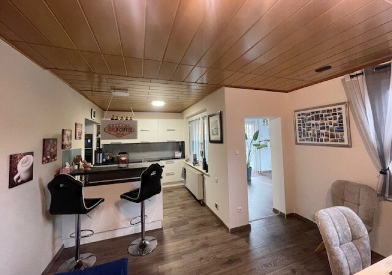 Aufteilung: Vorzimmer, großes Wohnzimmer, Esszimmer, Küche, Schlafzimmer, Kinderzimmer, Wintergarten, Bad und 2x WC.