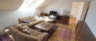 Die Wohnung im 1. Stock (=Dachgeschoß) besteht aus einem offenem Vorraum, Bad mit Wanne und Fenster, Toilette, einem großzügigen Wohnbereich mit Essplatz, Küche mit Speis und 2 weiteren Zimmern.
