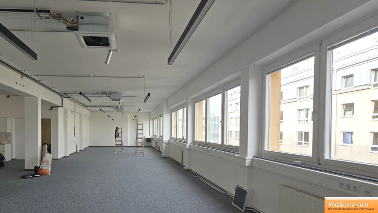 - 1 sehr großer Raum mit neuer Küche, nach Bedarf abteilbar