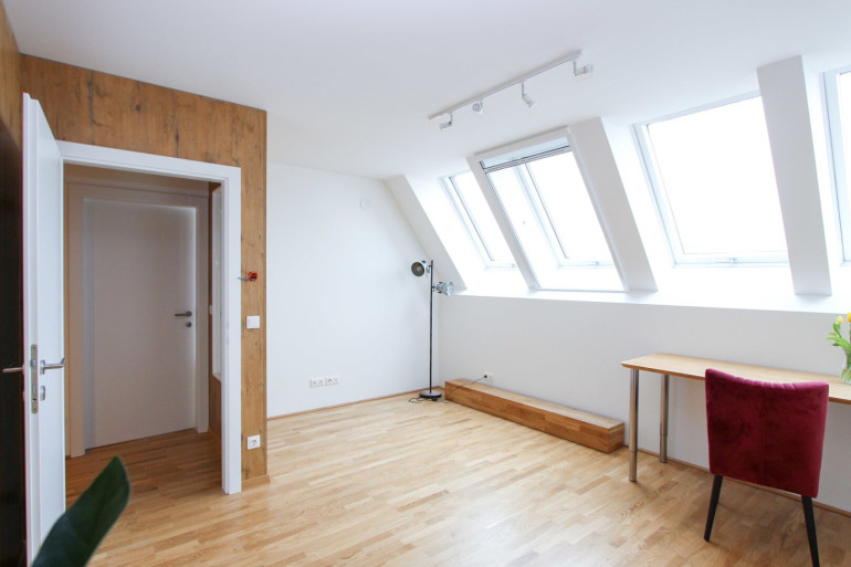 In einem modernen Dachgeschoß befindet sich eine Wohngemeinschaft mit insgesamt 7 Zimmer.