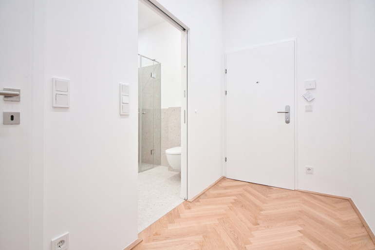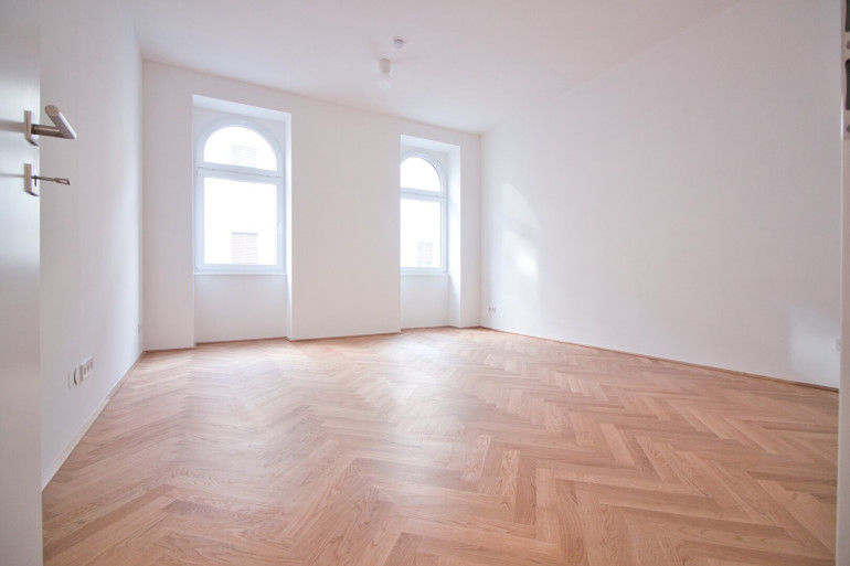 Die westseitige Wohnküche mit knapp 22 m² lässt keine Wünsche offen: Platz für einen Essbereich, für eine gemütliche Couchlandschaft und eine offene Küche ist ausreichend vorhanden. Die Wohnung überzeugt zusätzlich mit wunderschönem Fischgrätparkett, Fußbodenheizung, über 3 Meter hohen Räumen und Kunststoff-Doppelisolierglas-Fenstern.