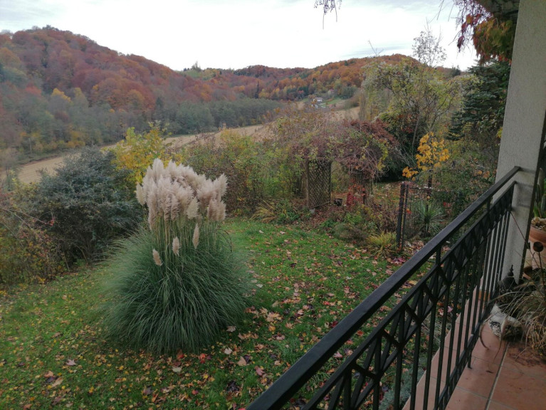 Genießen Sie entspannte Stunden im eigenen Garten oder auf der sonnigen Terrasse, die einen atemberaubenden Fernblick und einen herrlichen Grünblick bietet.