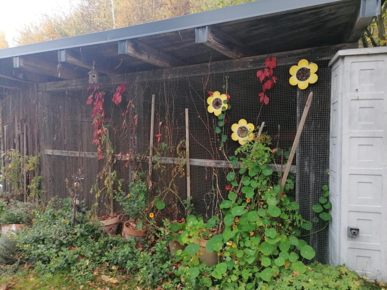 In unmittelbarer Nähe des Hauses (großer Baubereich) befinden sich zwei mit Strom ausgestattete Holzschuppen.